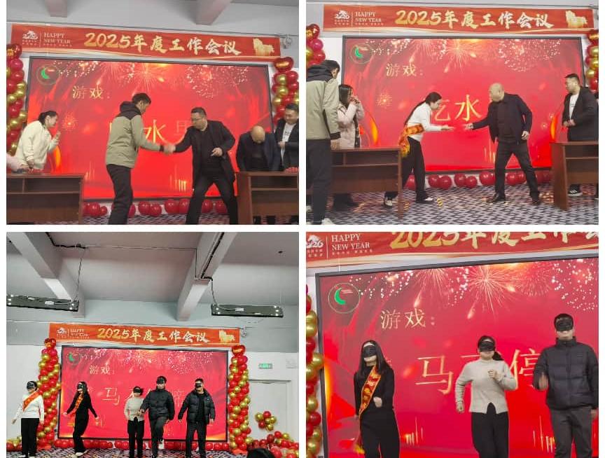 此外,年会还设置了"马不停蹄"、"吃水果"等游戏环节,员工涌跃参与,现场气氛热烈欢快,充满了浓浓的节日氛围。